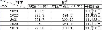從上圖可以看出2023年A季秘魯能提供中國市場的魚粉量幾乎為零,2023年B季魚粉開捕處于歷史最早月份。