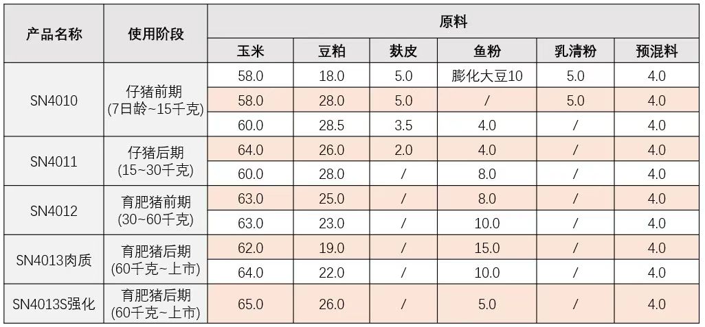 SN系列商品豬預(yù)混料